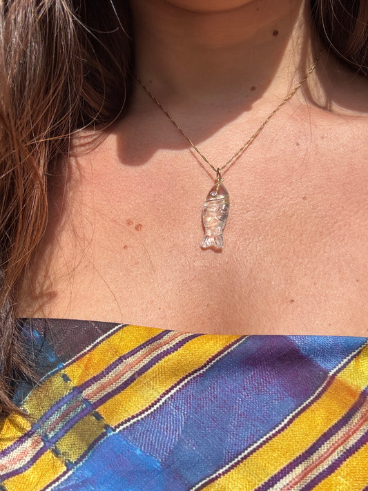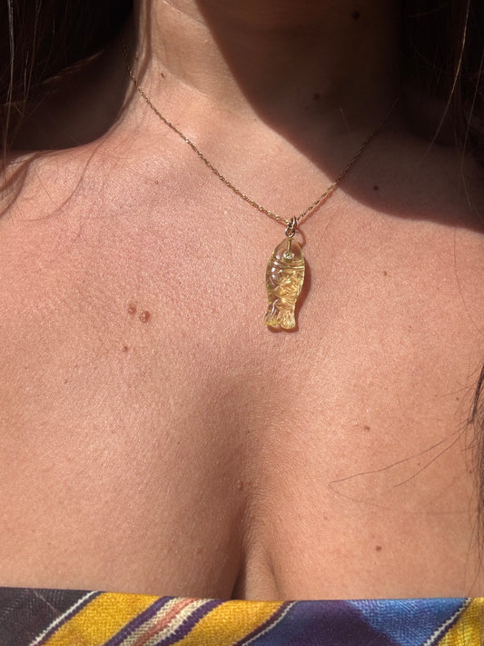 NON NON YELLOW QUARTZ YELLOW SAPHIRE FISH PENDANT