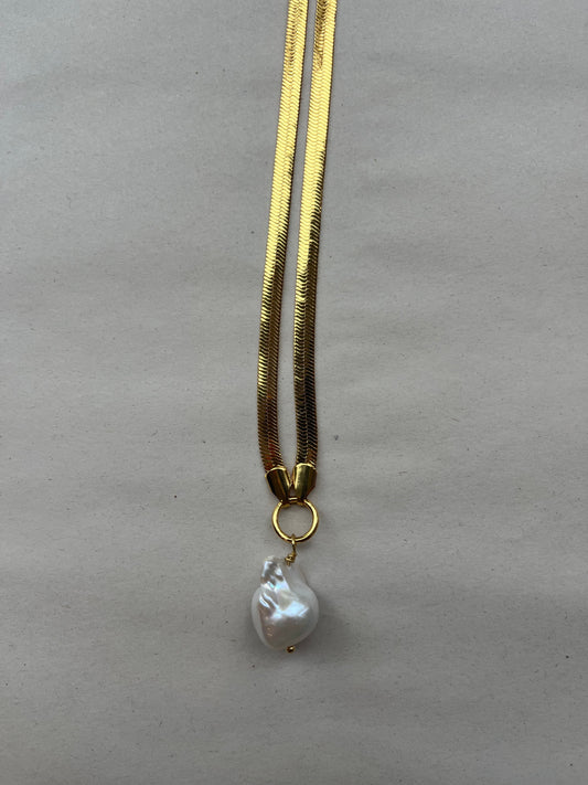 SANDRA ALEXANDRA BAROQUE PEARL AND SNAKE CHAIN NECKLACERegular price £165.00 GBPRegular priceUnit price / per-
