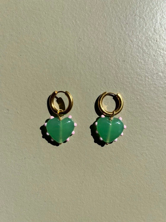 SANDRA ALEXANDRA MILAGROS HEART EARRINGS JADE GREEN AND PINKRegular price £86.00 GBPRegular priceUnit price / per-