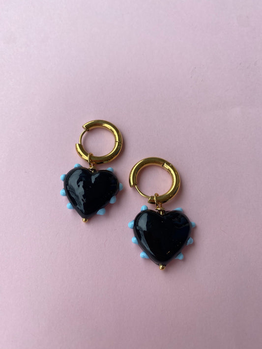 SANDRA ALEXANDRA MILAGROS HEART EARRINGS BLACK & BLUERegular price £86.00 GBPRegular priceUnit price / per-