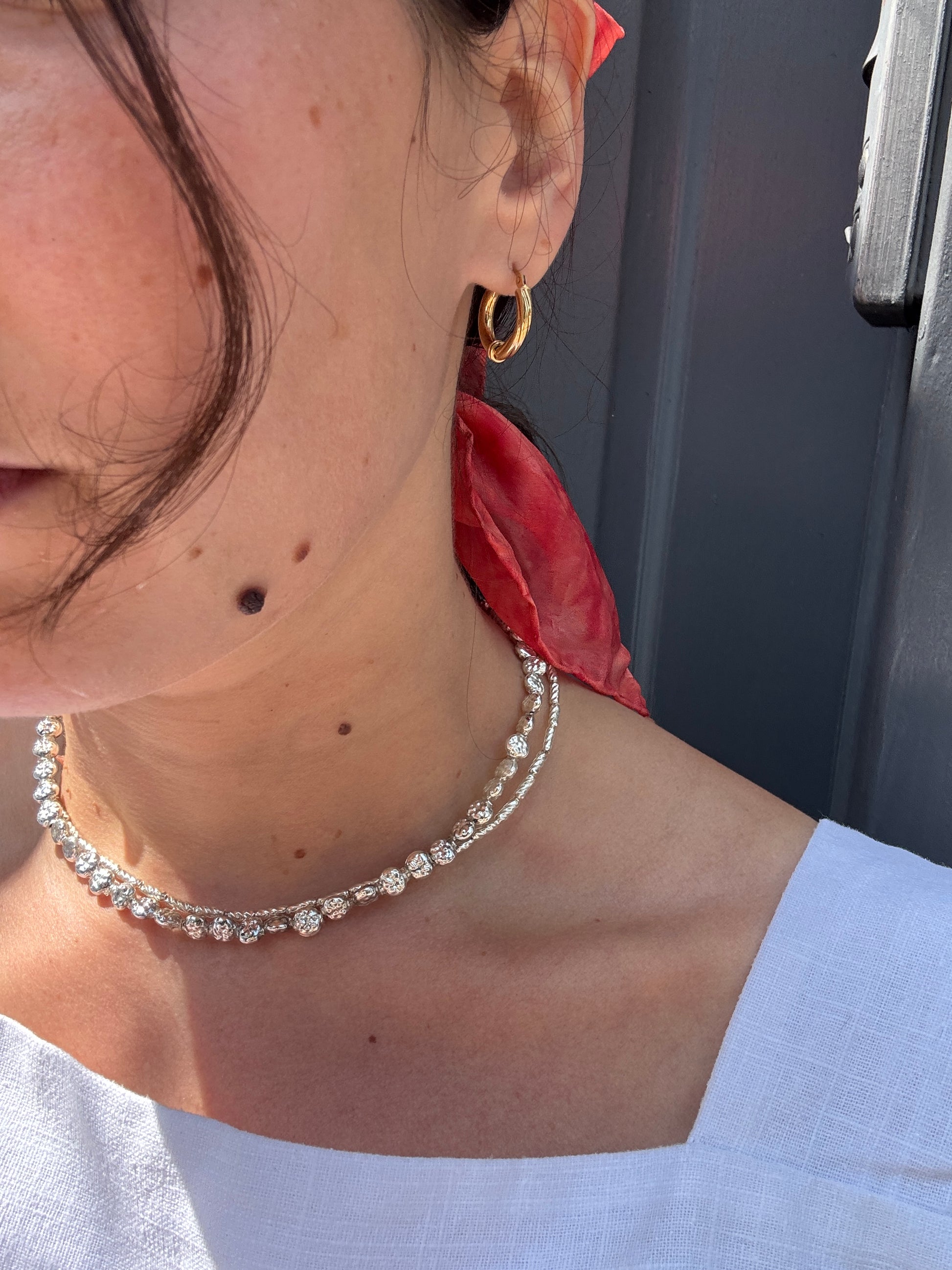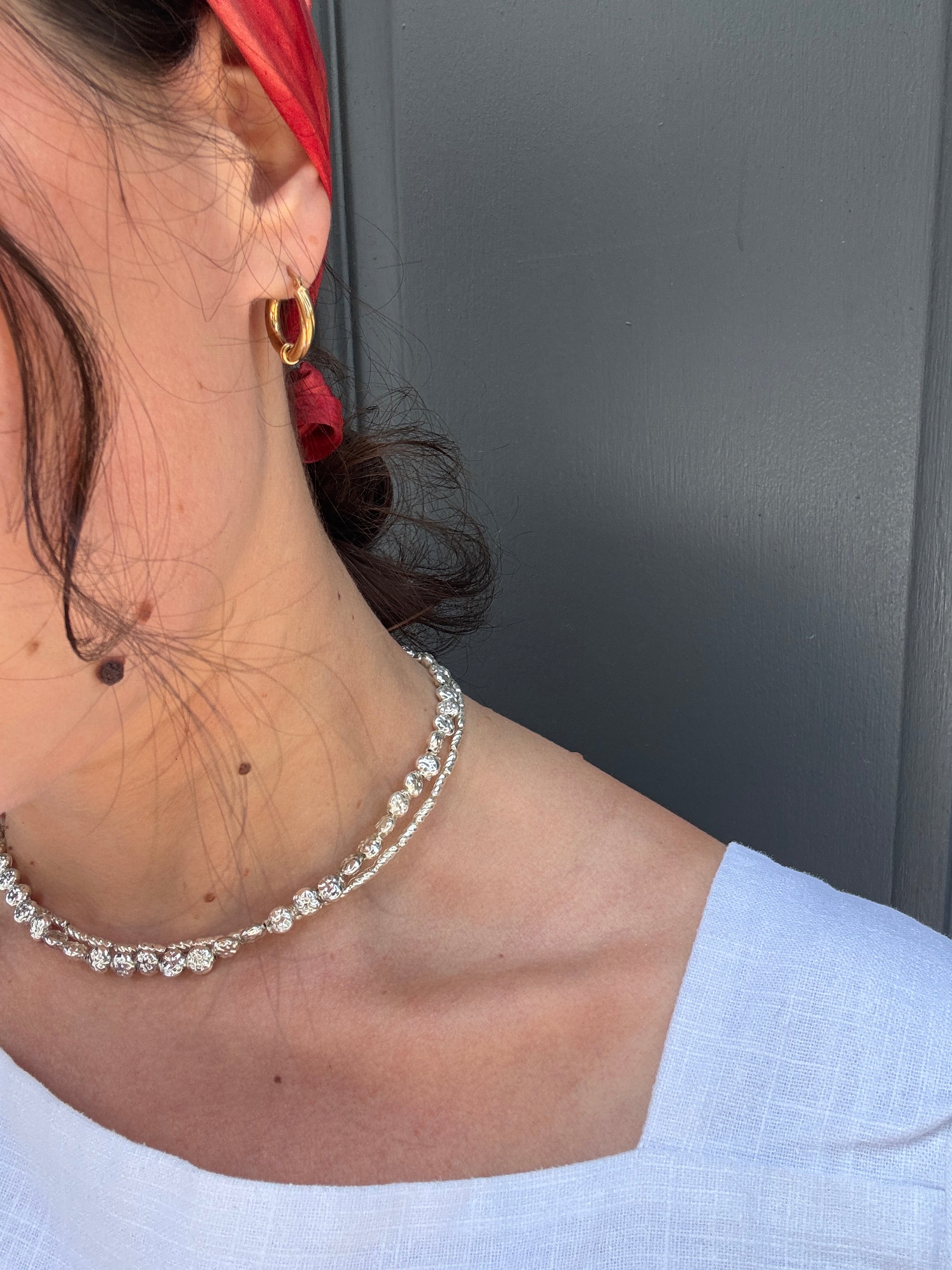 The perfect everyday chunky gold hoop earrings with an eye catching half twisted hoop.