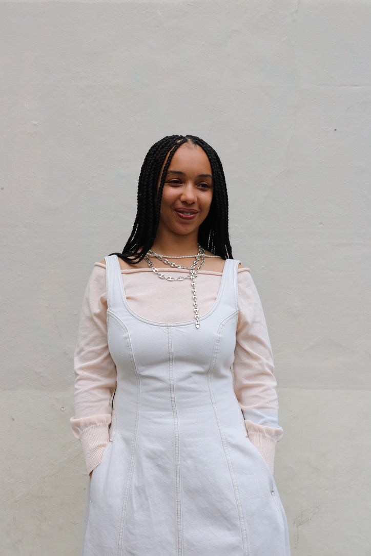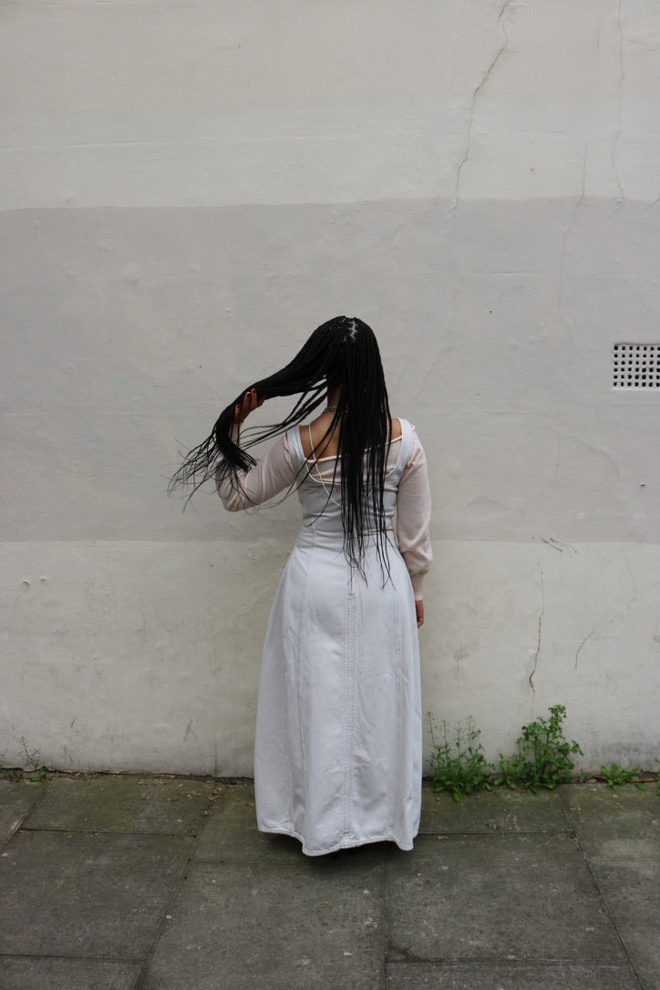 DALA COCOON BUSTIER DENIM DRESS IN SALT