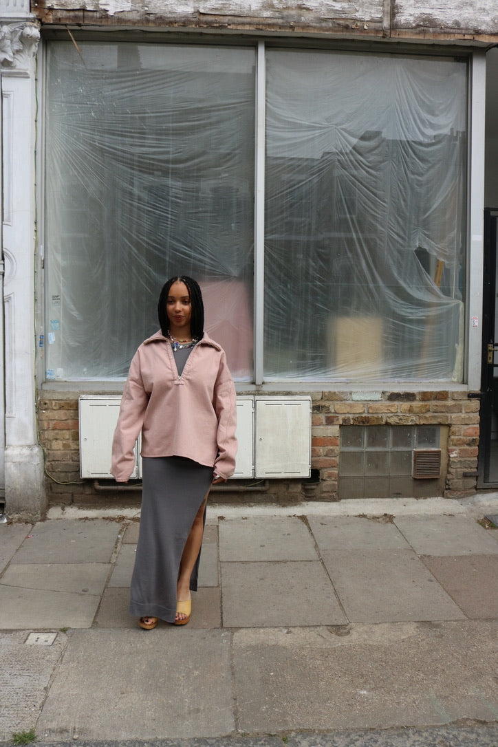 The Funnel Popover is designed to be oversized and relaxed. If you prefer a closer fit, we recommend sizing down.