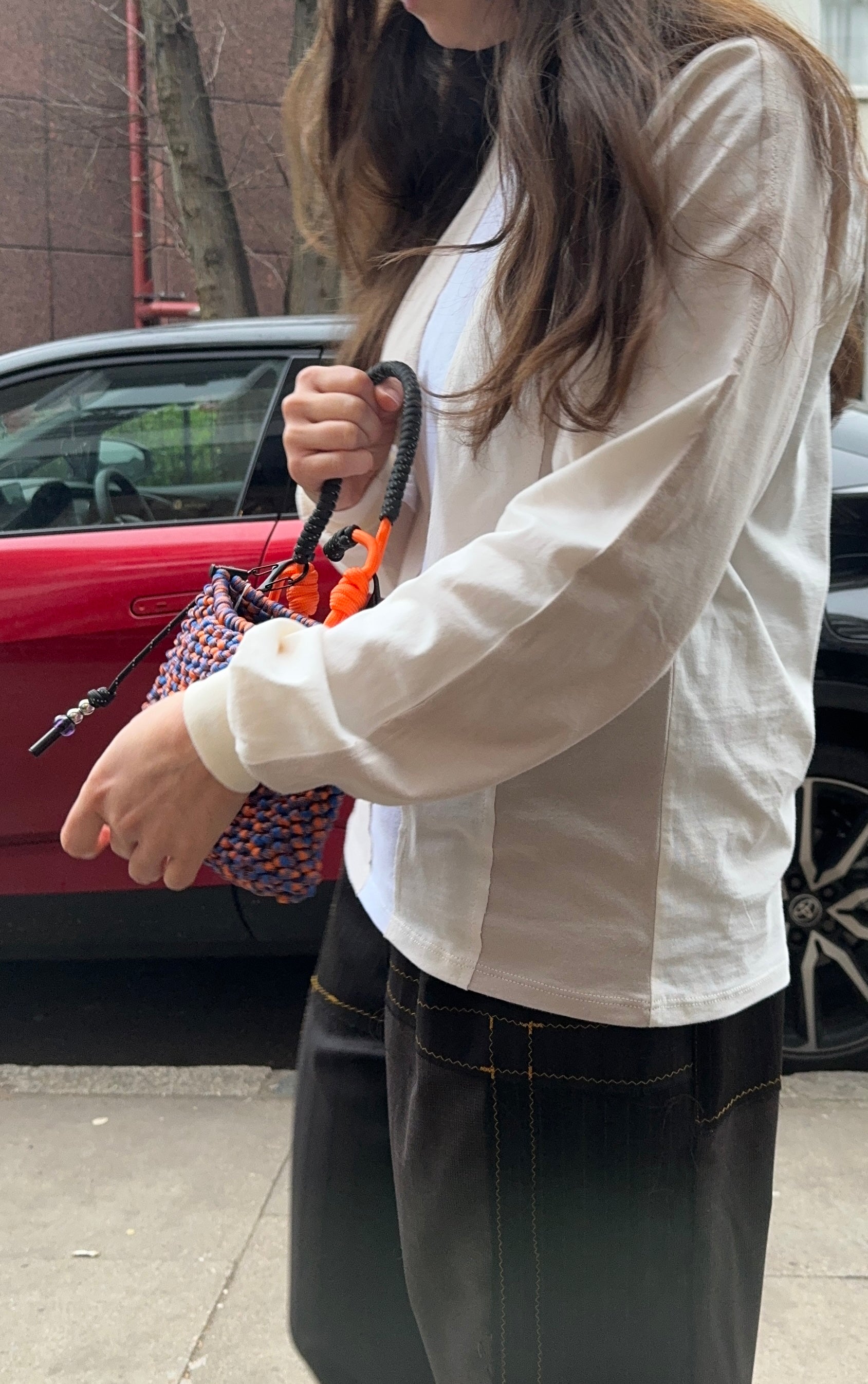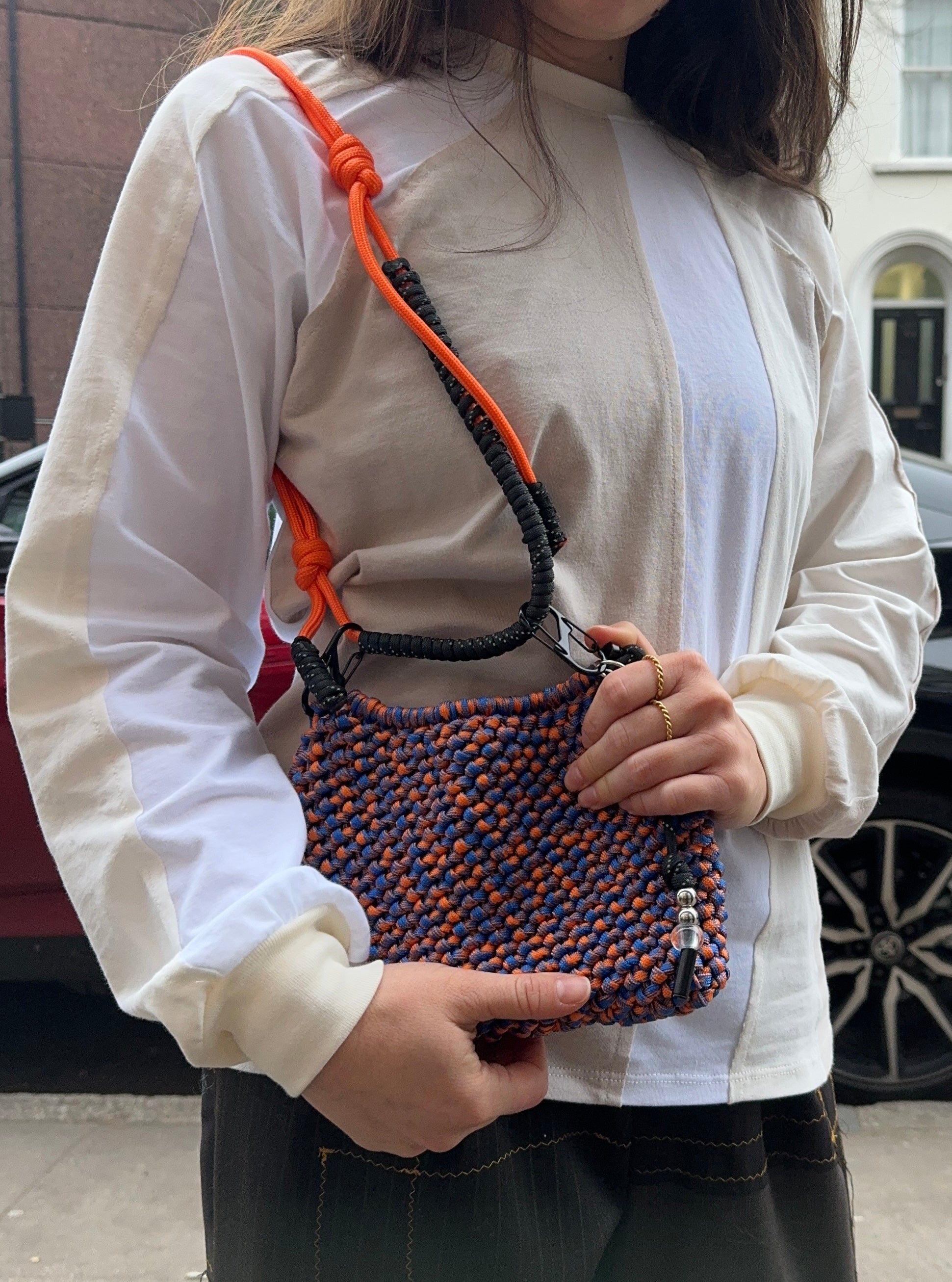 Long sleeve panel tee made by Kirstie in London using offcuts of deadstock jersey.