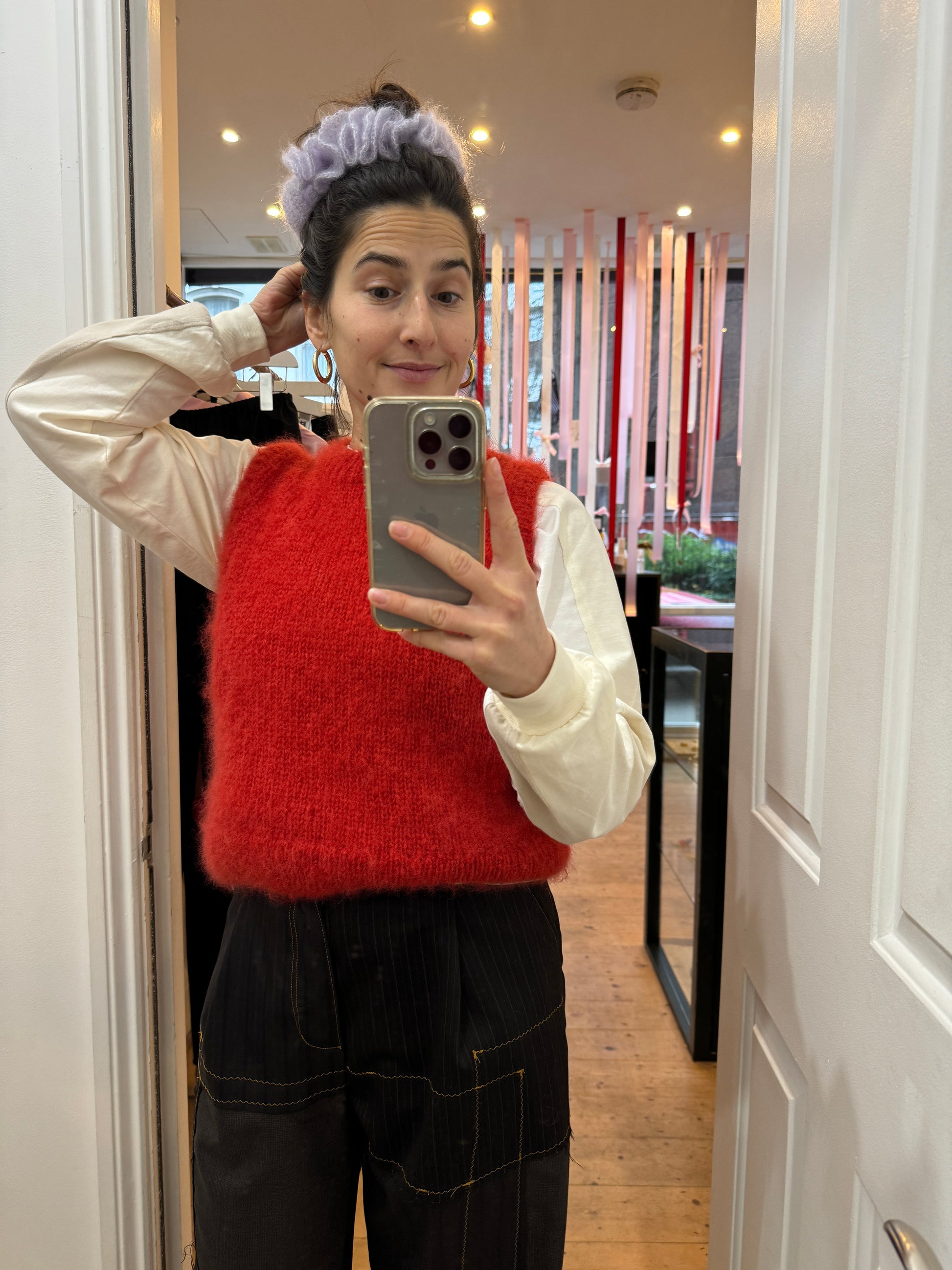 Looks great on its own or with a knit vest on top!