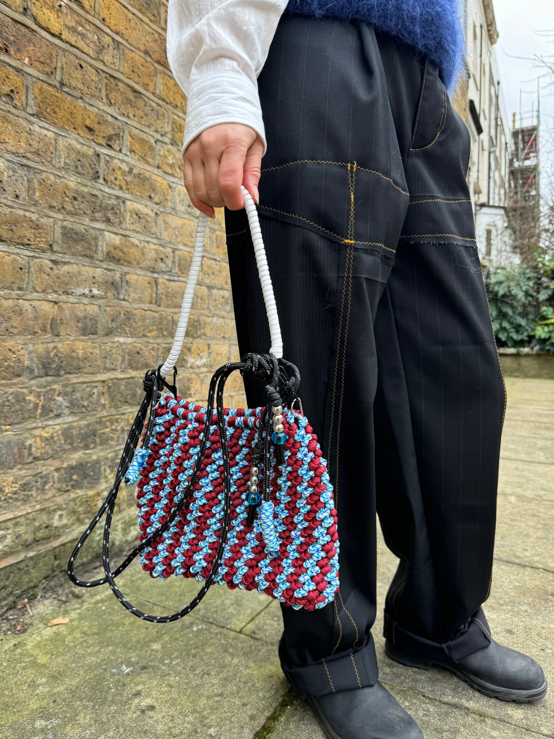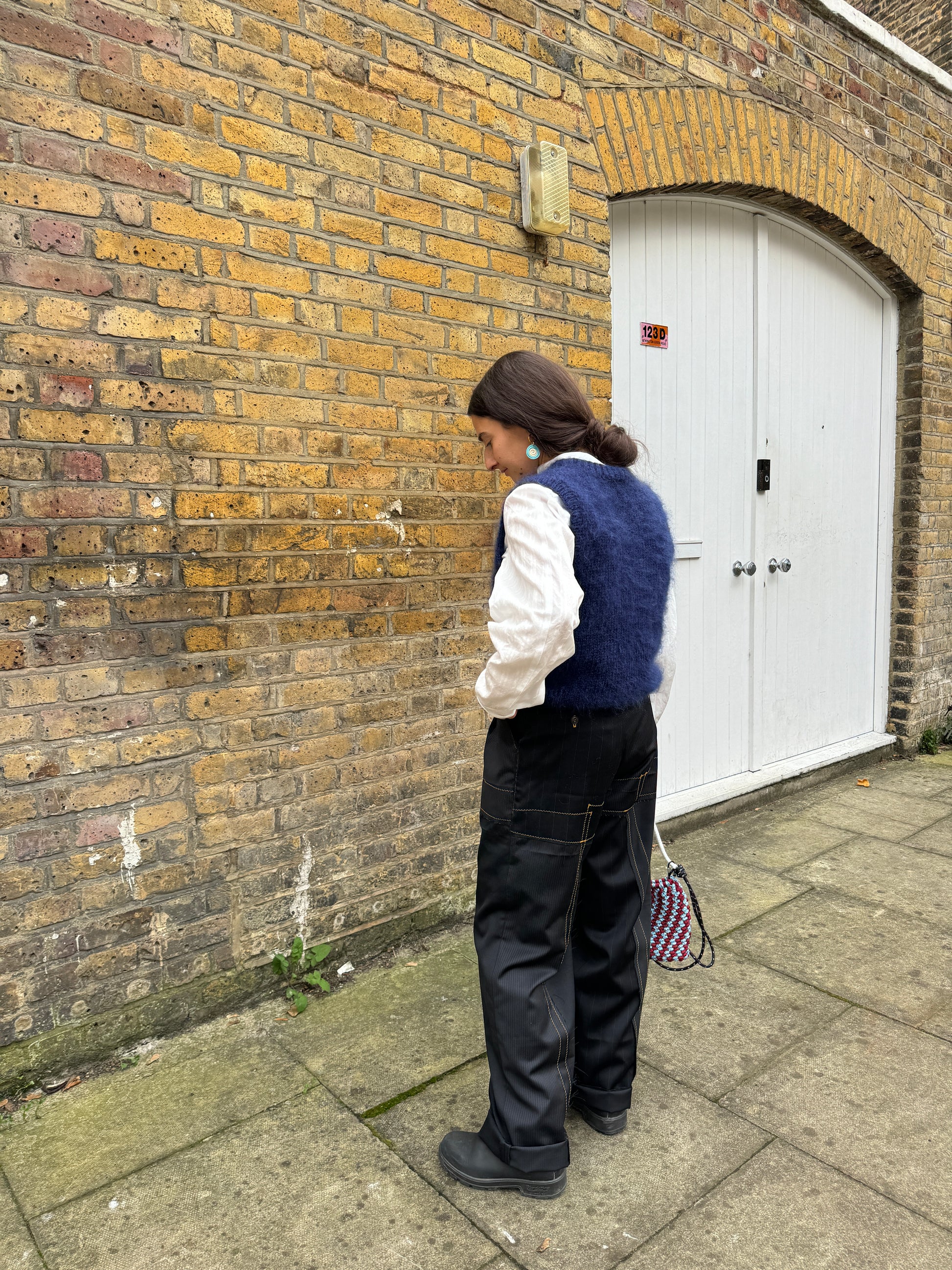 These beautifully tailored trousers are made from repurposed tailoring wools so each one produced will be slightly different. The panels are stitched together with a contrast orange zig zag stitch. Made by the lovely Kirstie. Wear them on your waist or size up and wear them on your hips.