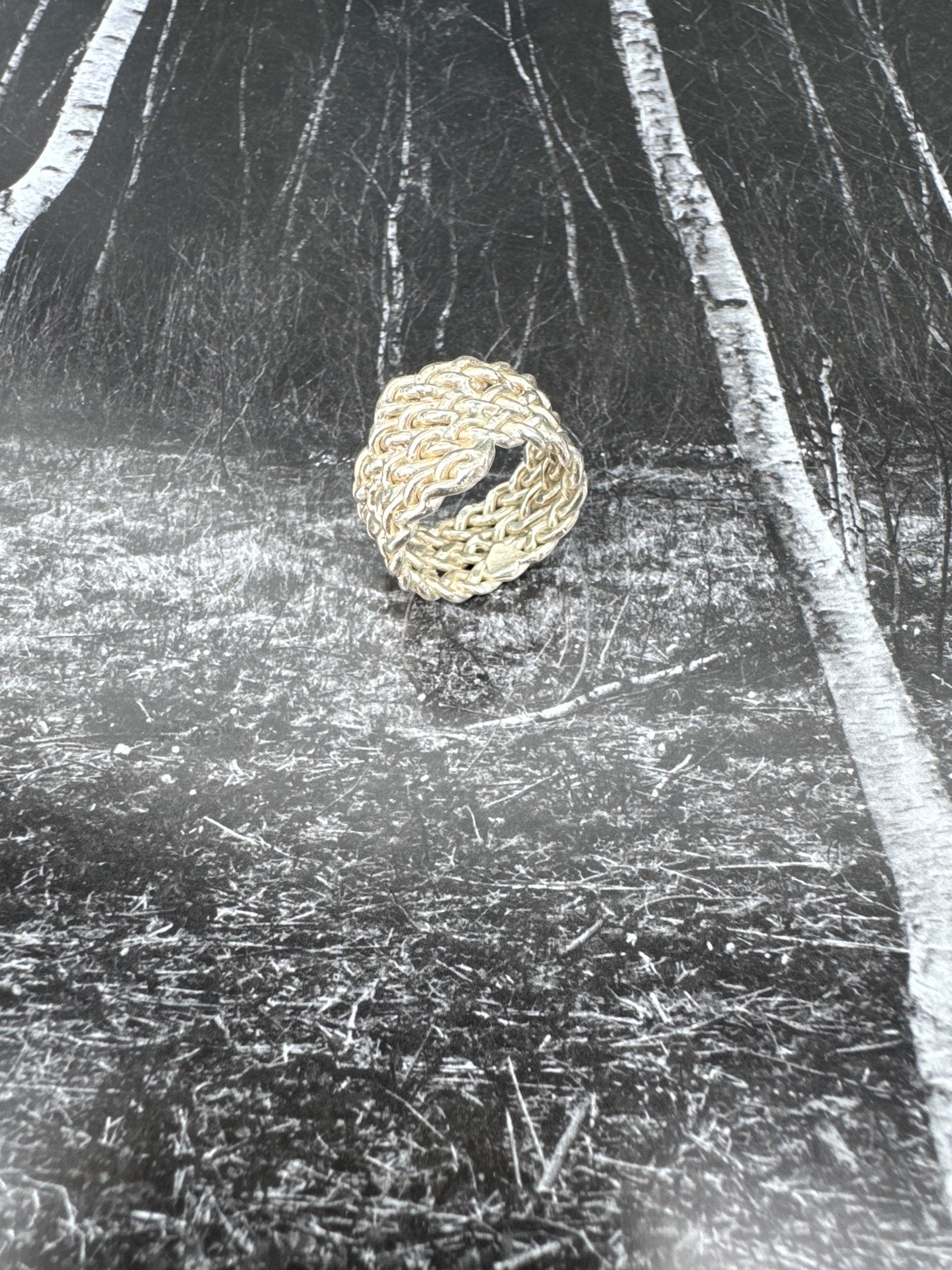 Crafted with precision and love, this Woven Ring showcases the artistry and craftsmanship that go into every piece. The intricate weaving technique, combined with a contemporary twist, results in a ring that's both visually stunning and comfortable to wear.