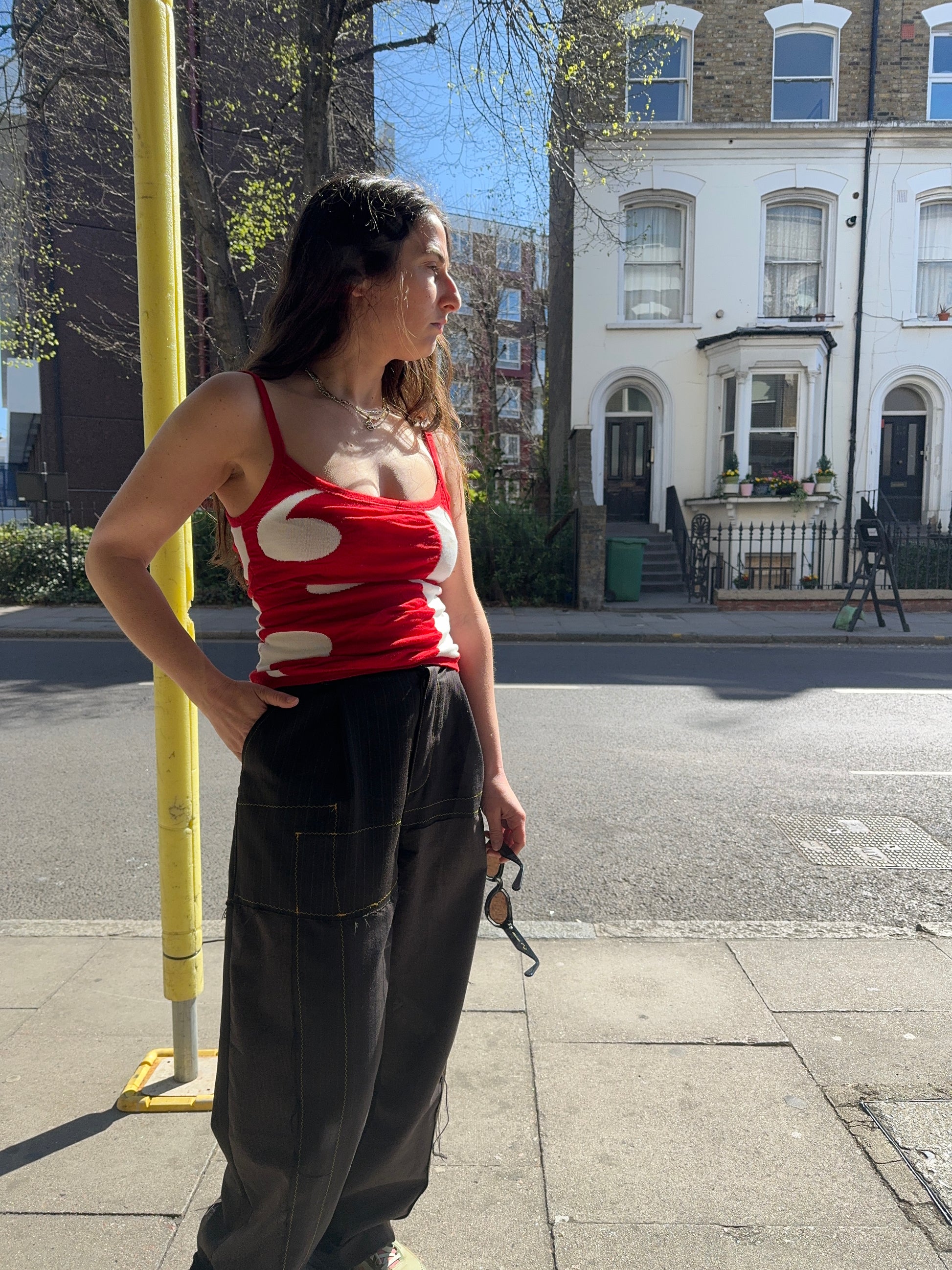 Reversible vest with numbers 3 + 8 across the whole piece. The inner layer of the vest has some elastic in it for the perfect tight fit.