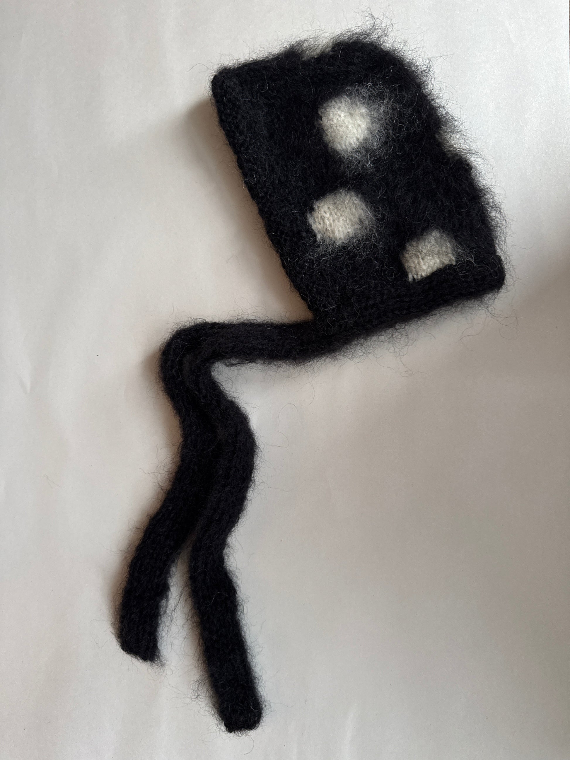 Fluffy mohair and wool bonnet with polka dots, super cosy, a must this winter!