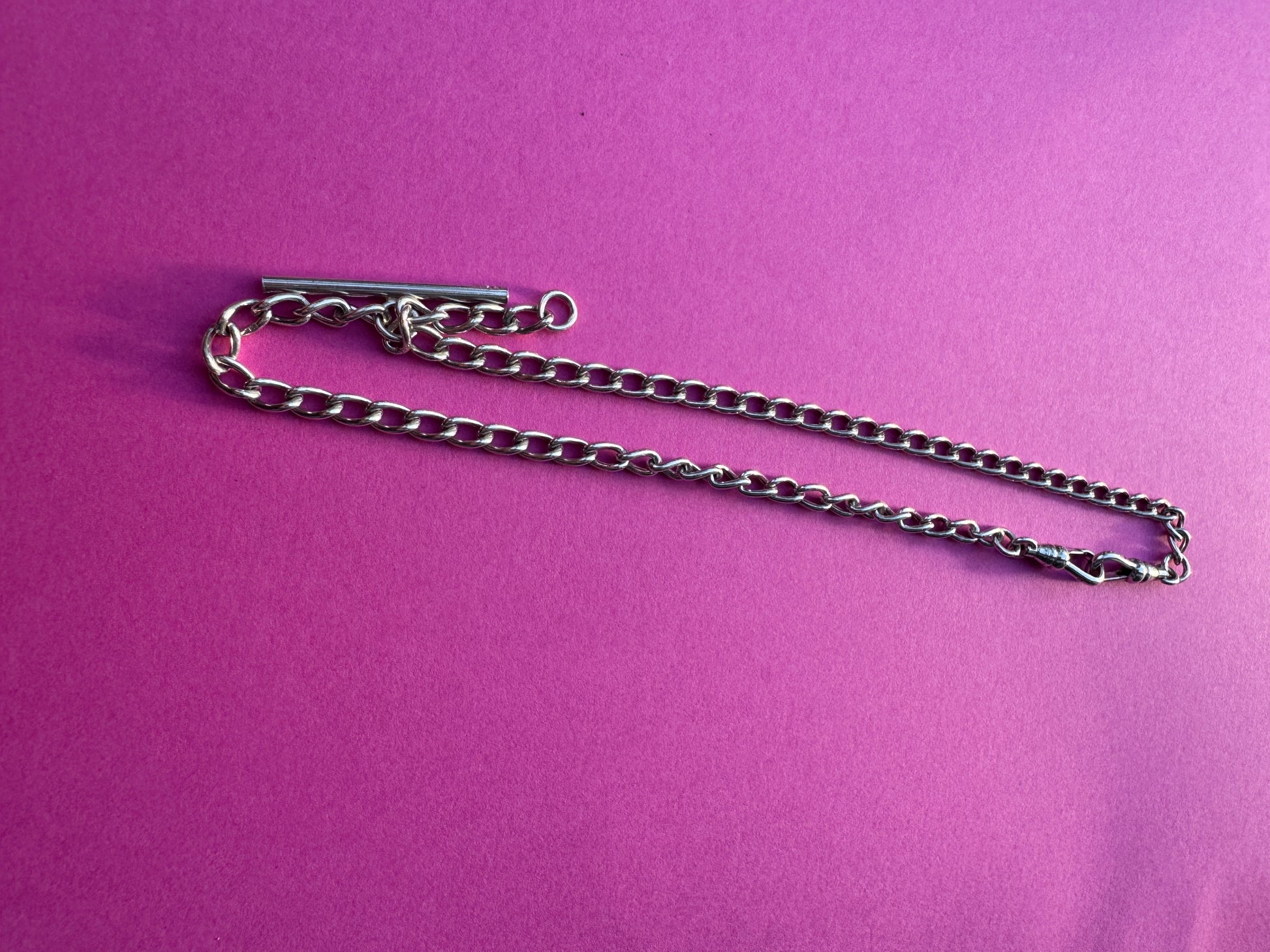 T bar silver vintage chain, looks great with other necklaces or on its own! This necklace may show some signs of wear.