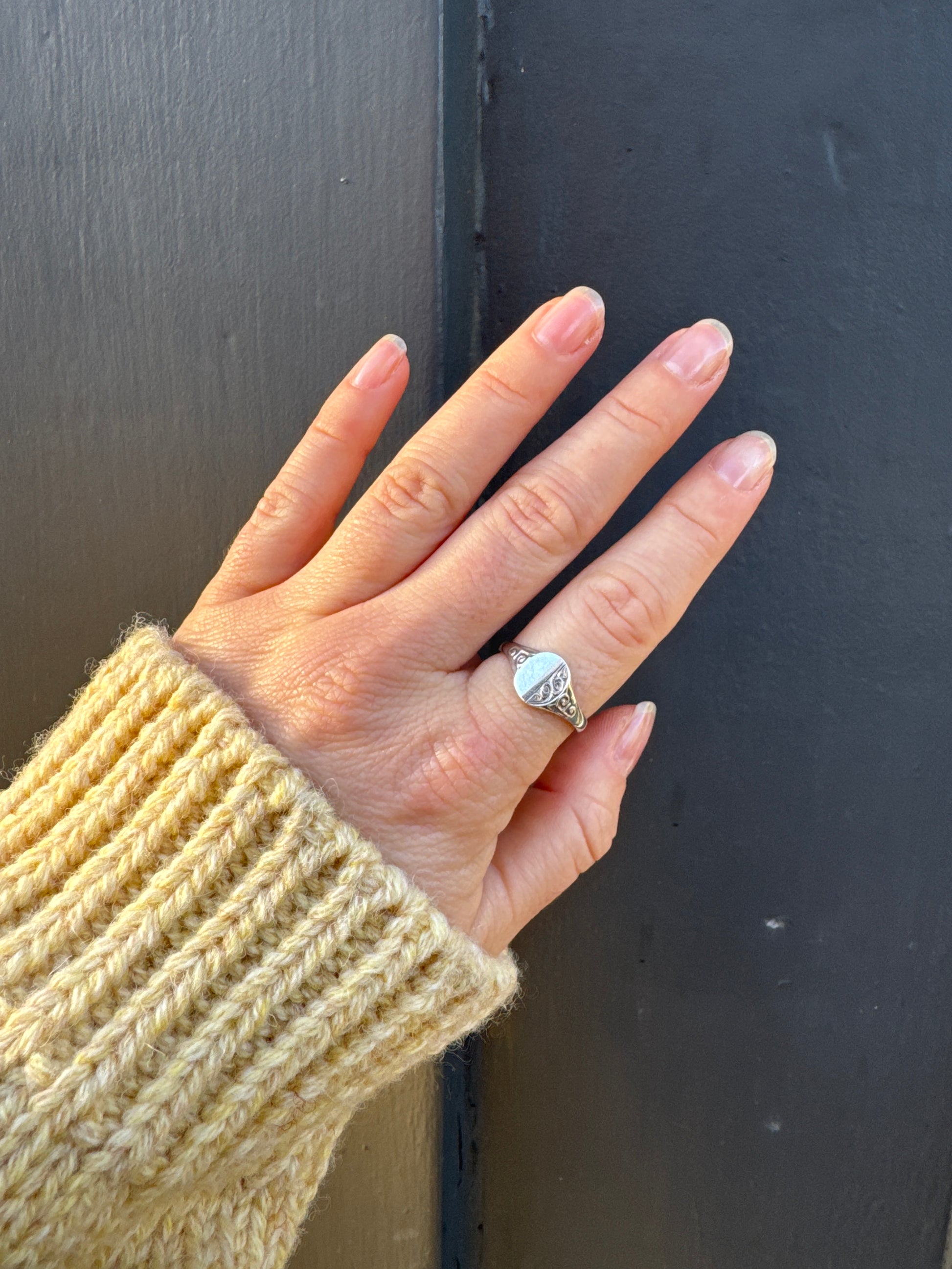 Detailed silver signet ring. This item is vintage so may show some signs of wear.