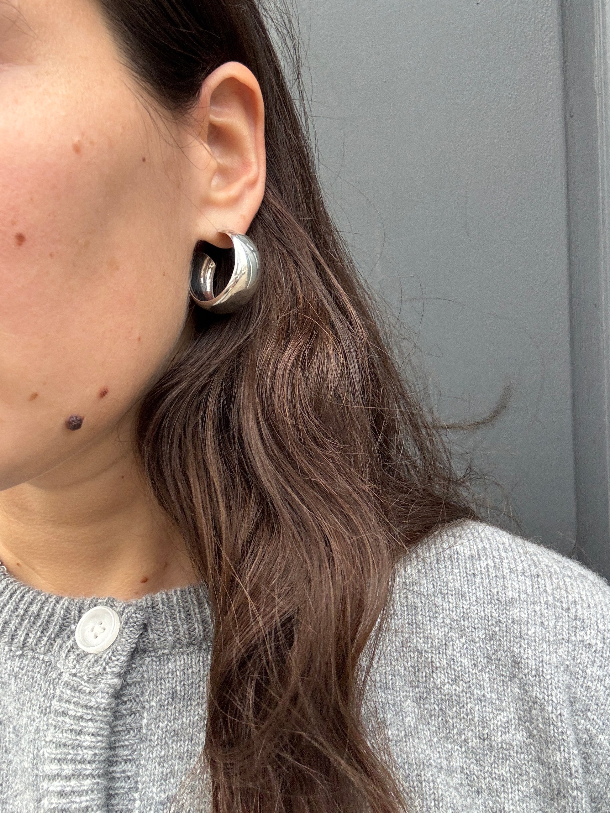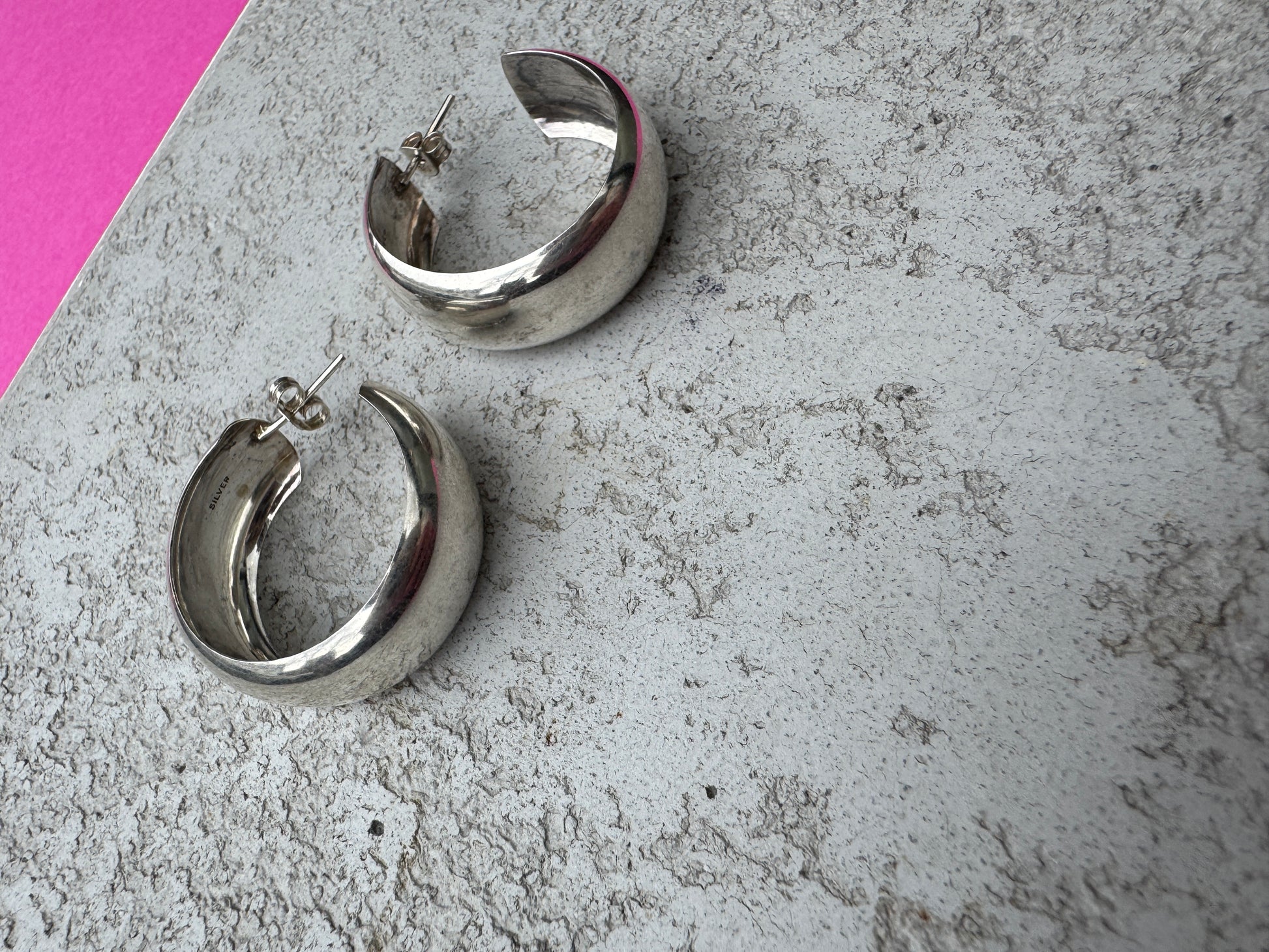 Chunky silver hoops. These are vintage so may show some signs of wear.