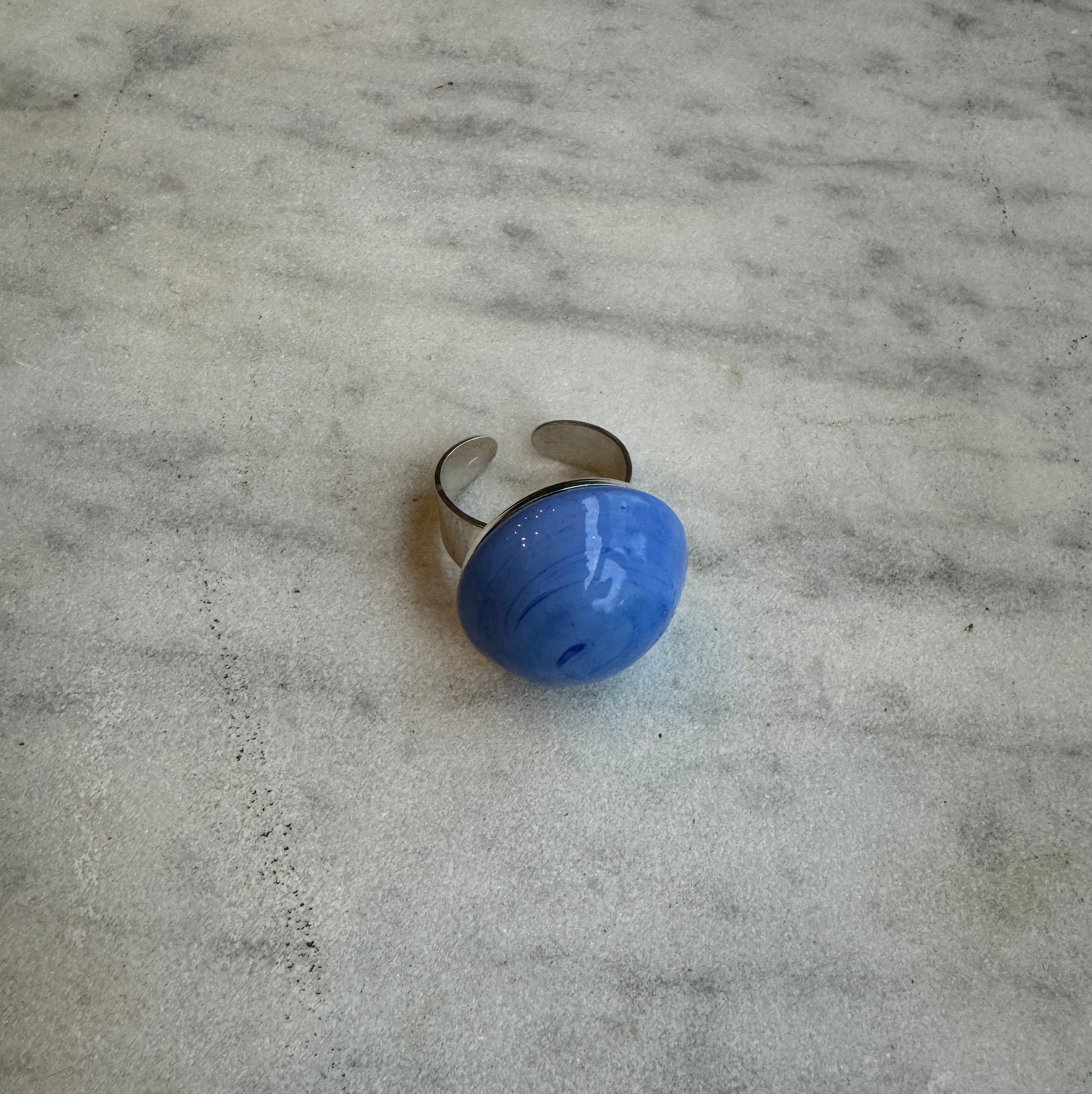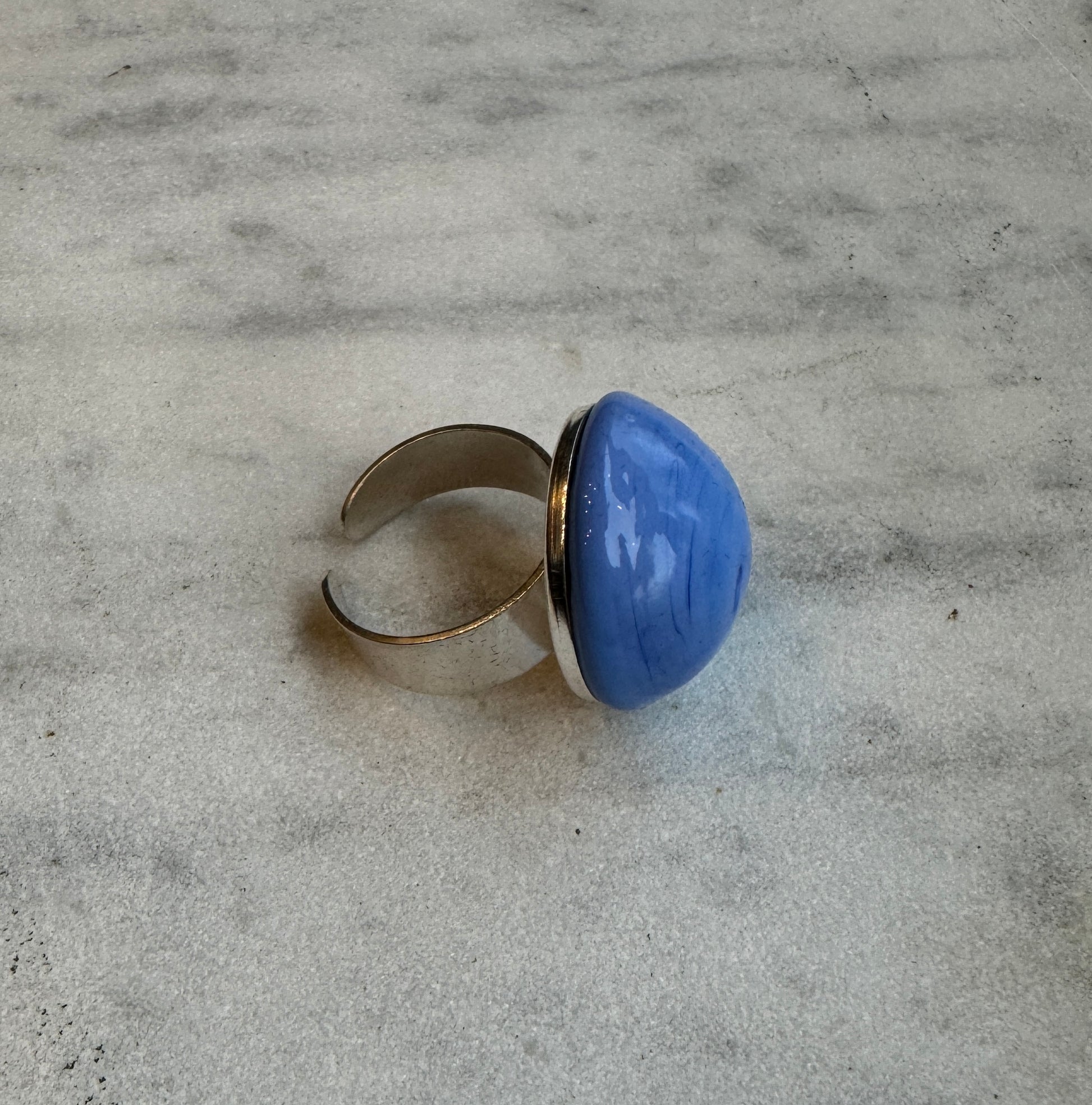 Vintage glass cabochon. Sterling silver adjustable ring.Handmade in Paris