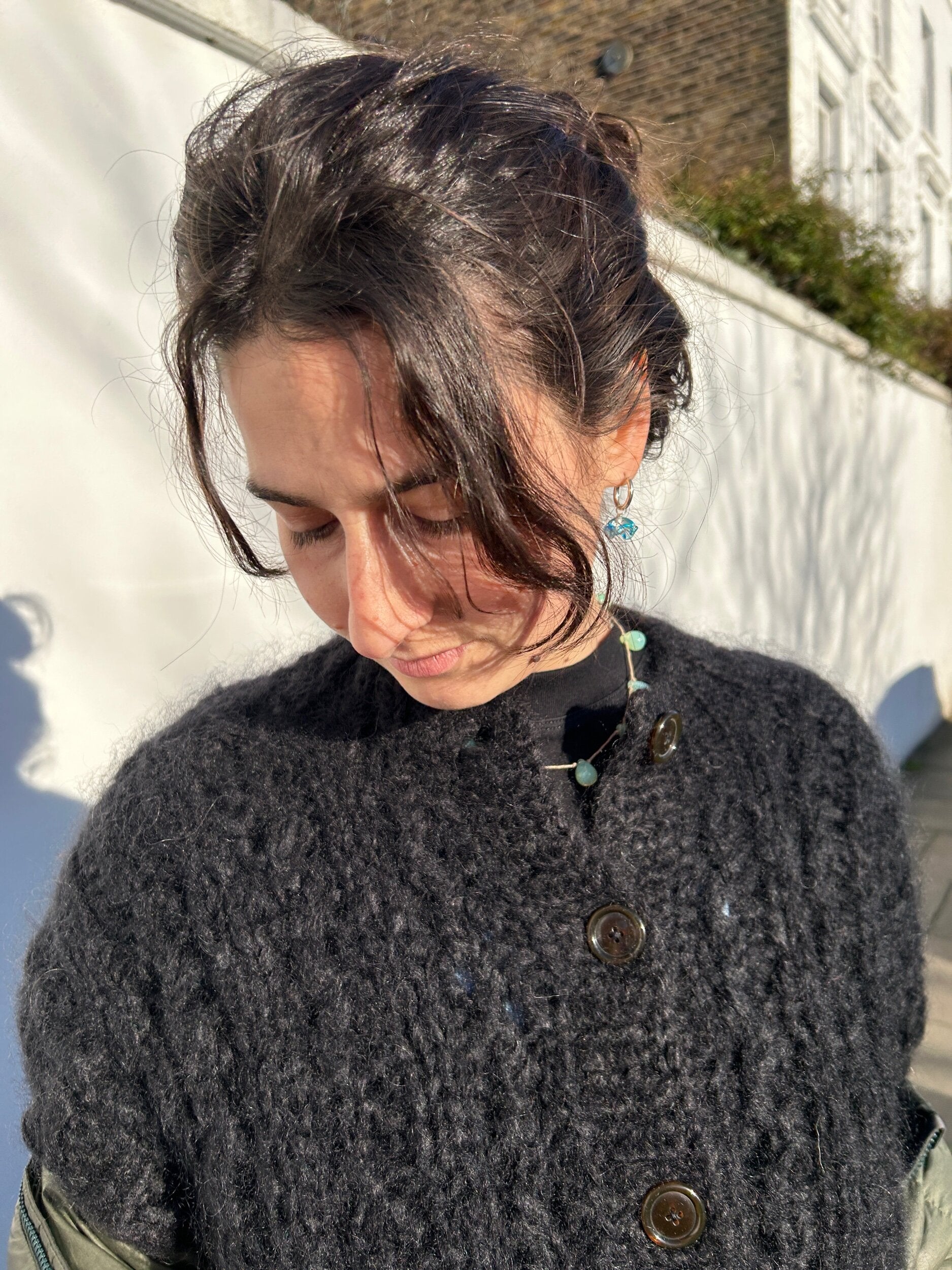 Vintage handmade molten glass bead pendant on a gold plated 14mm diameter hoop.