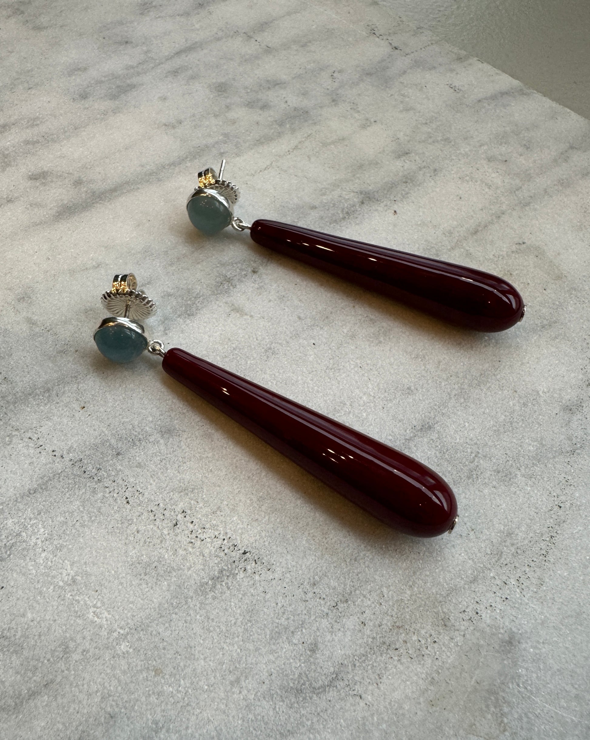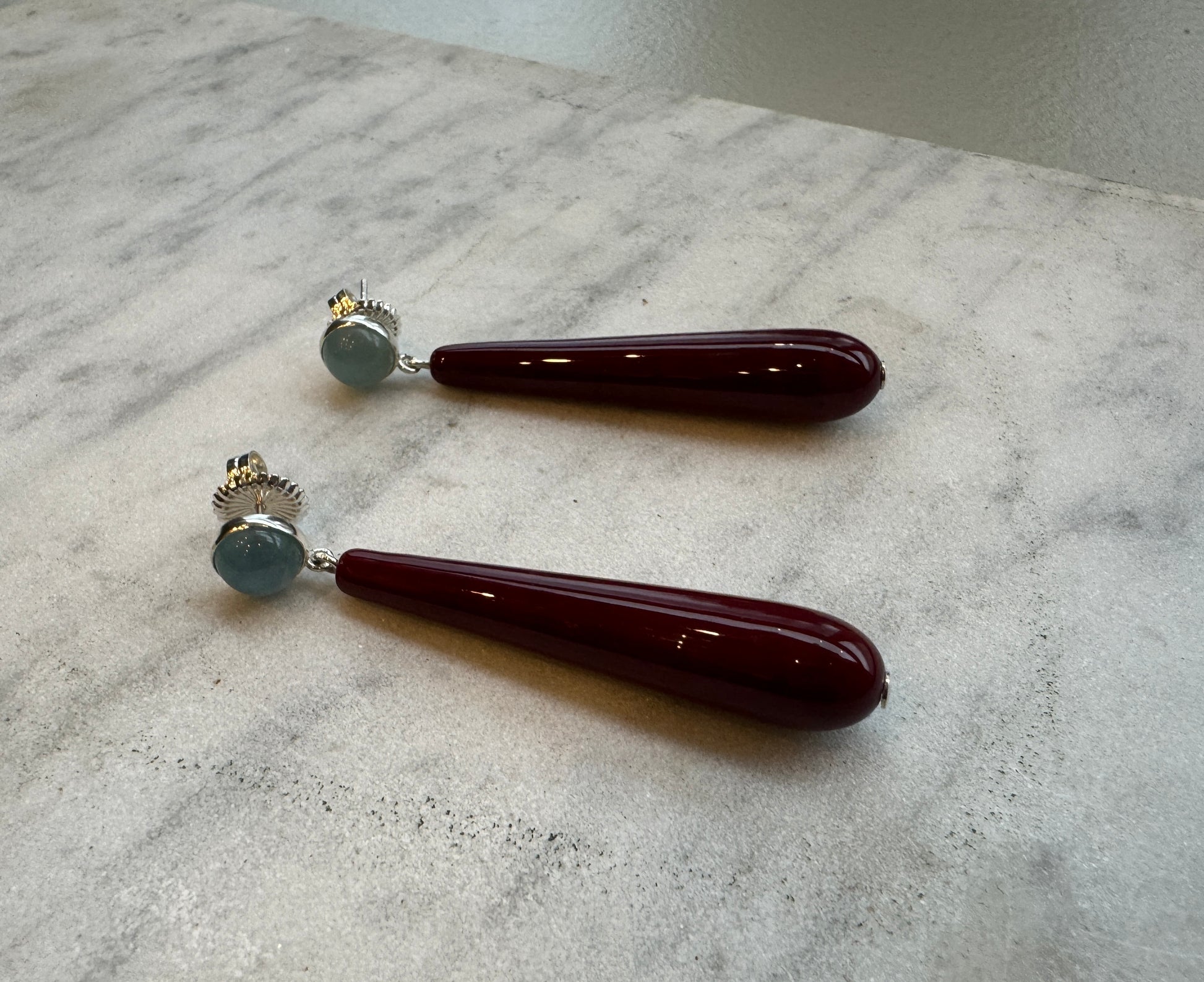Vintage glass cabochon on a sterling silver mounting. Long handmade glass drop. Sterling silver findings. Handmade in Paris.