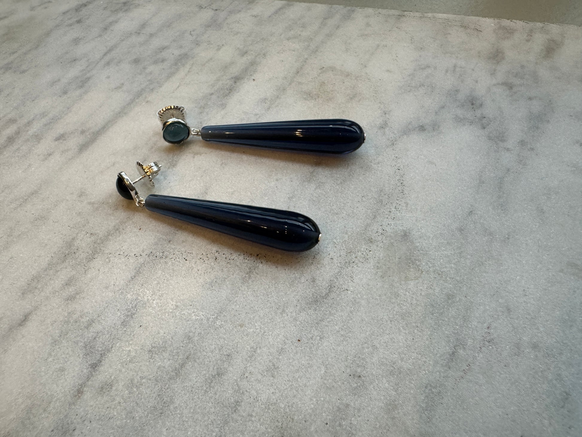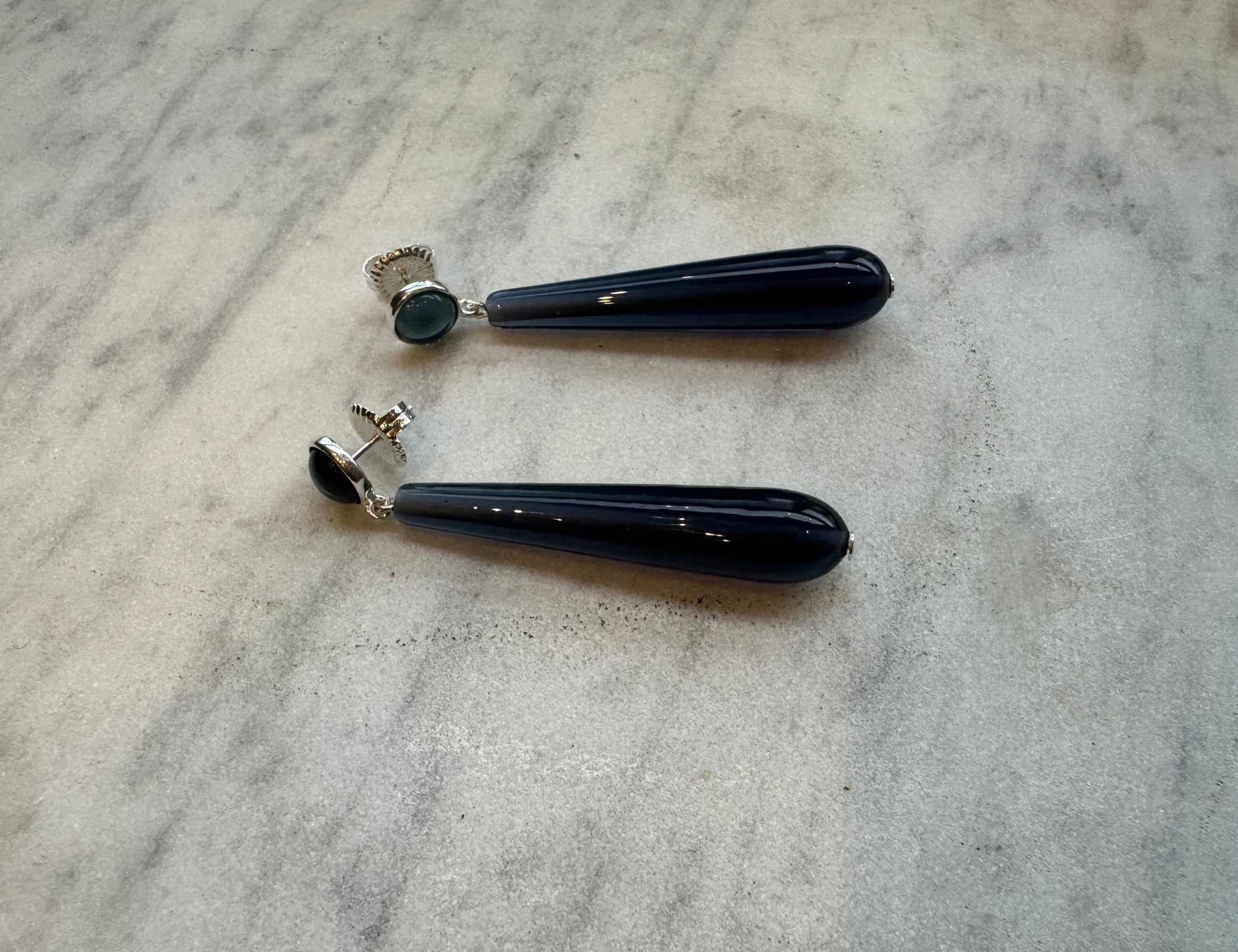 Vintage glass cabochon on a sterling silver mounting. Long handmade glass drop. Sterling silver findings. Handmade in Paris.
