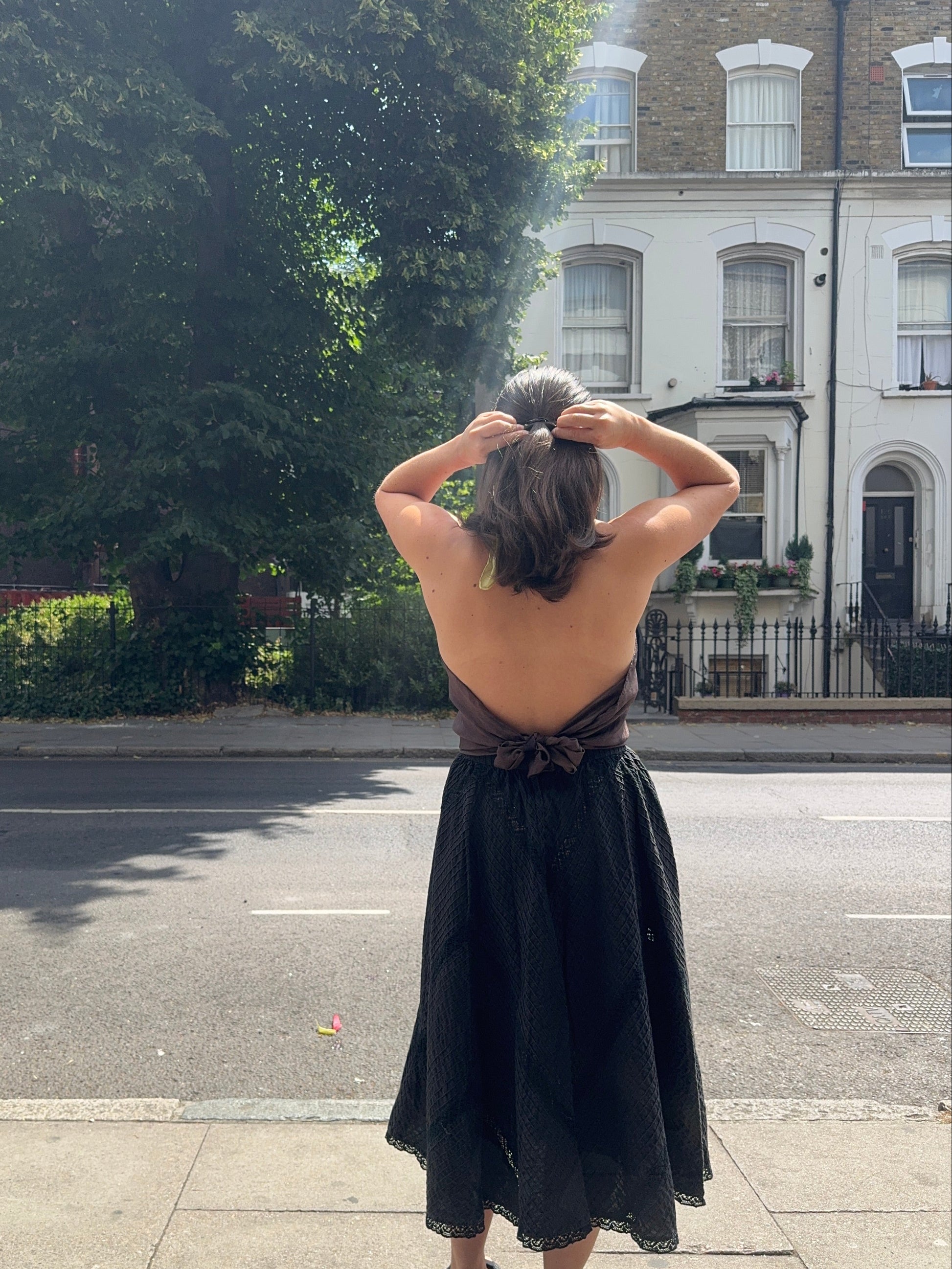 Worn with slow and sow bandana and scarf (as a top). Both available to purchase.