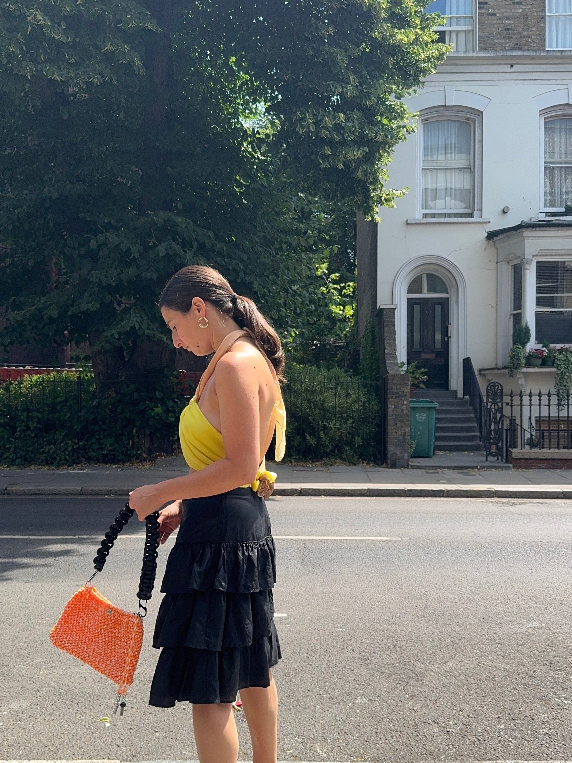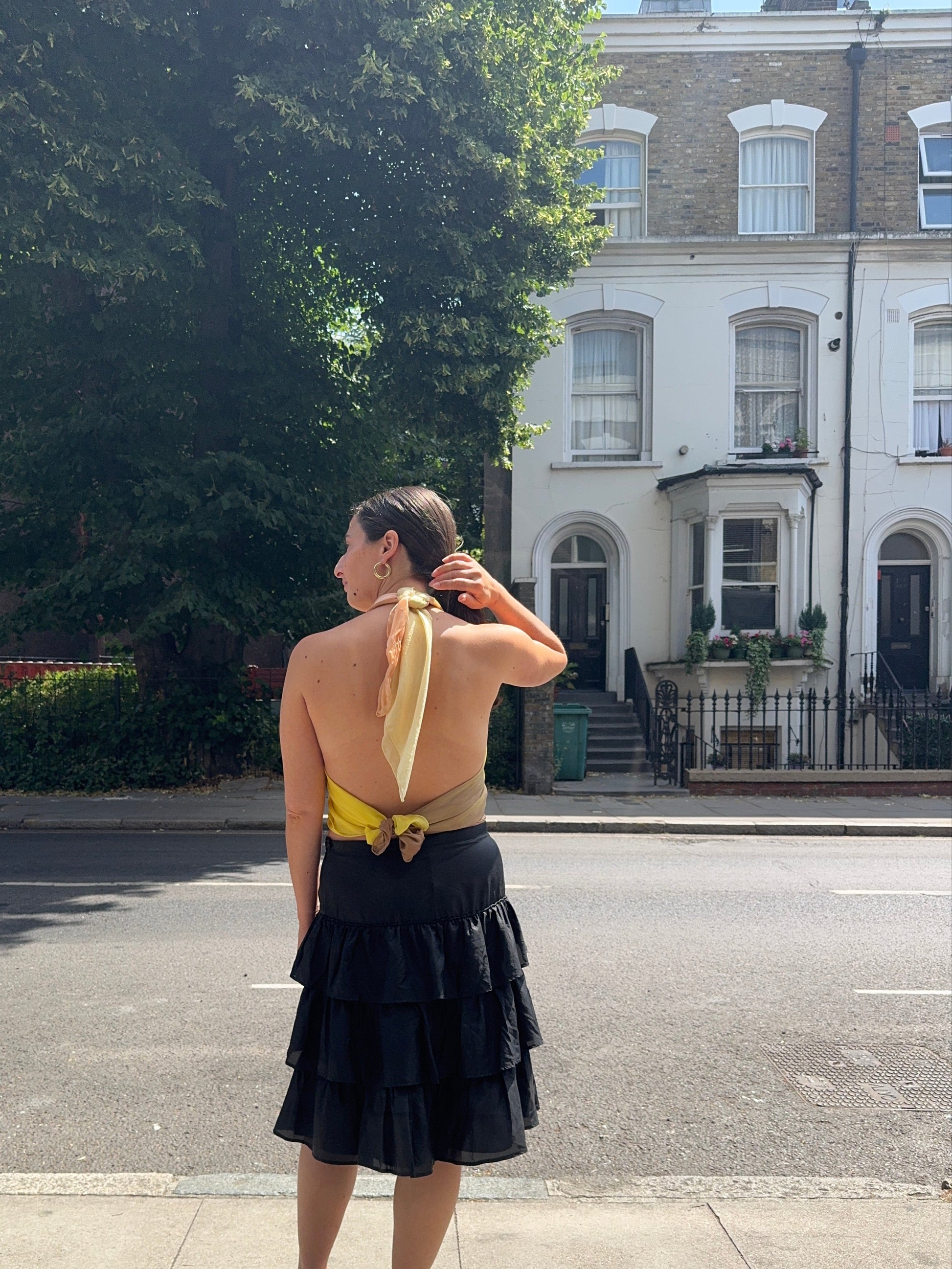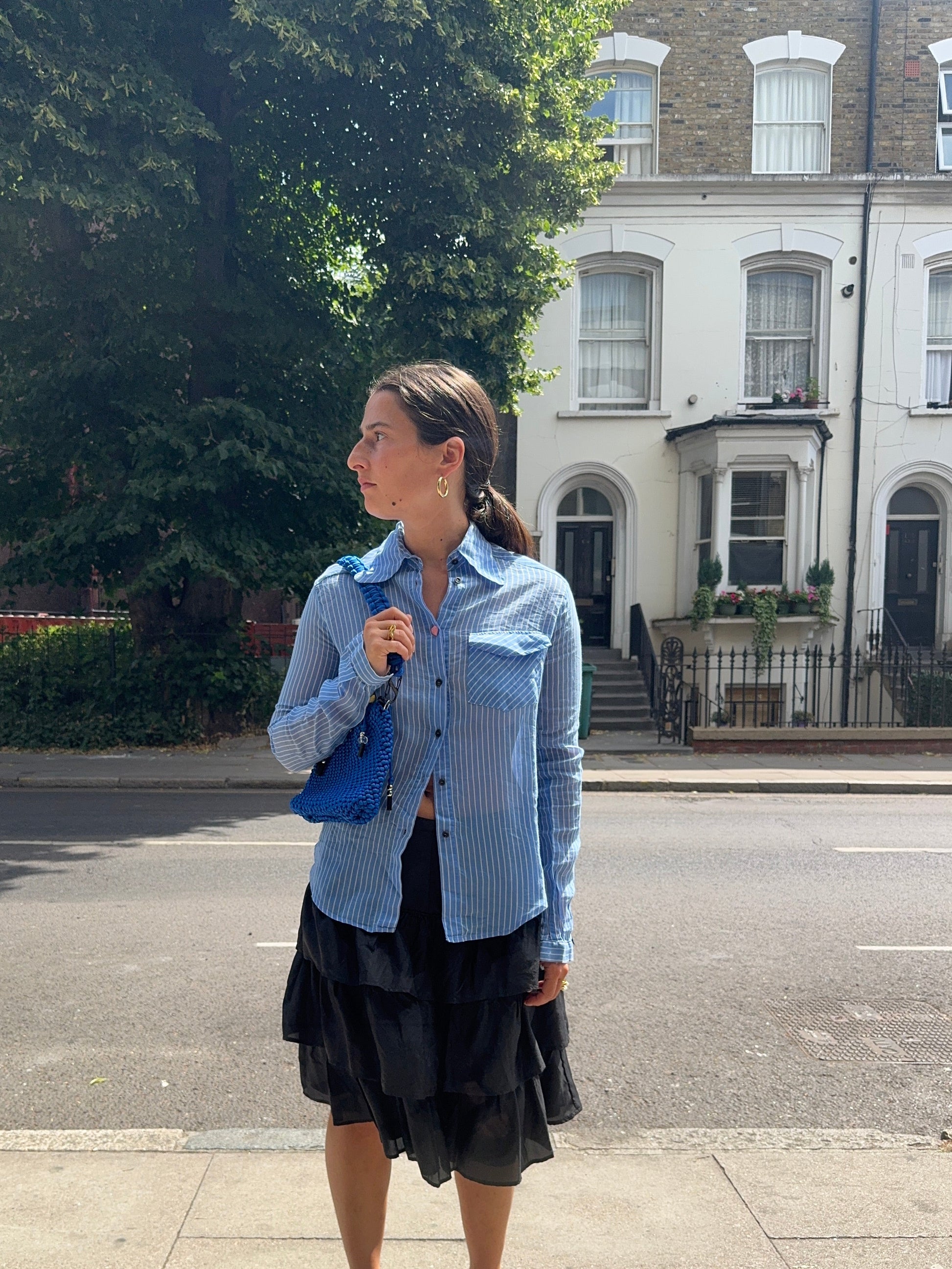 90s Agnes b silk rara skirt with zip and button fastening. This item is vintage so may show signs of wear.