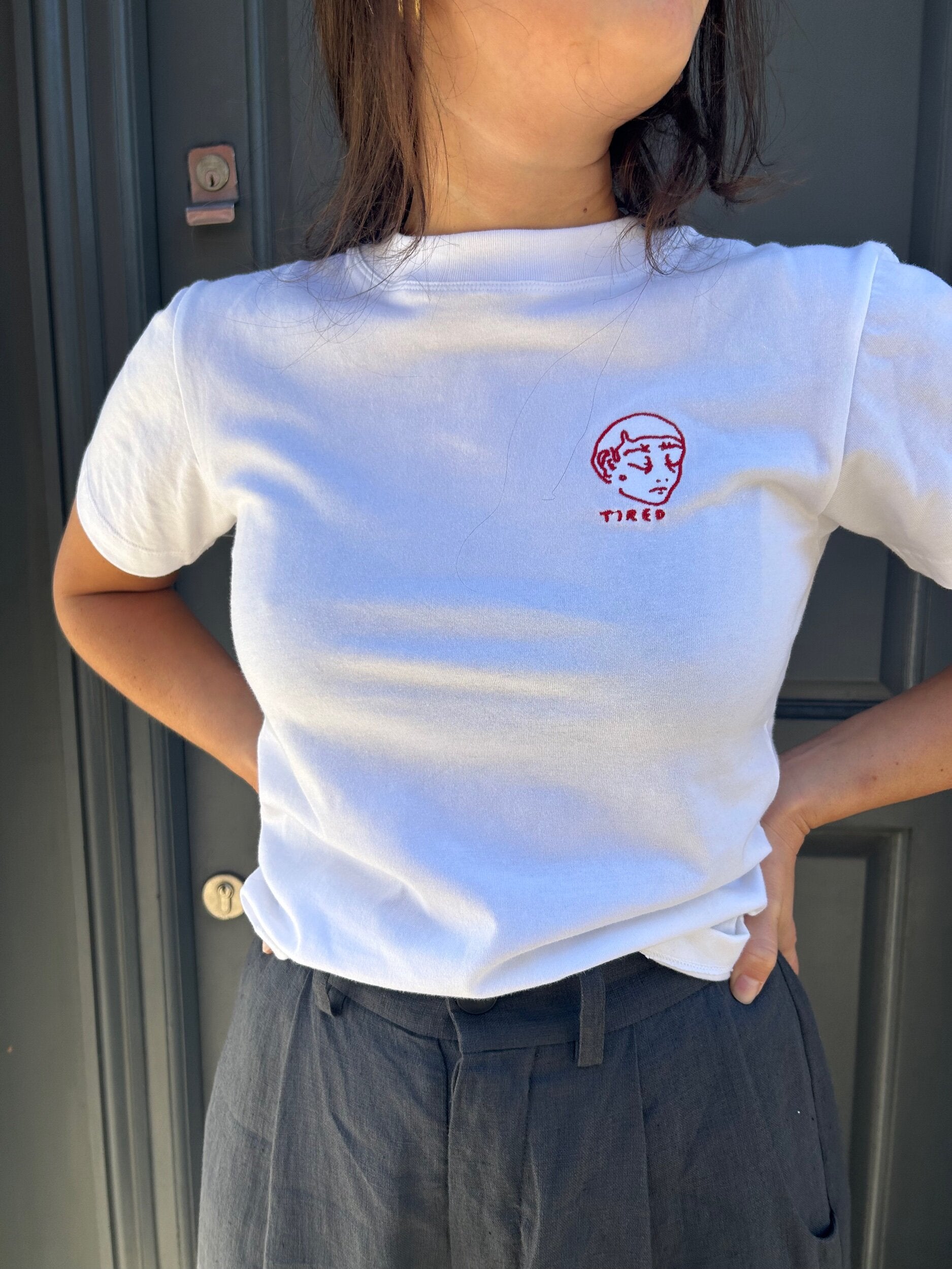 Tummy Ache T-shirts value comfort, sustainability, and expressing your emotions. This T-shirt is for those who know that being tired, and feeling overwhelmed, doesn’t minimise your power.*yawn* let’s take down this exhaustively productive framework of society *yawn* This T-shirt is made from 100% Organic cotton and embroidered with recycled thread.