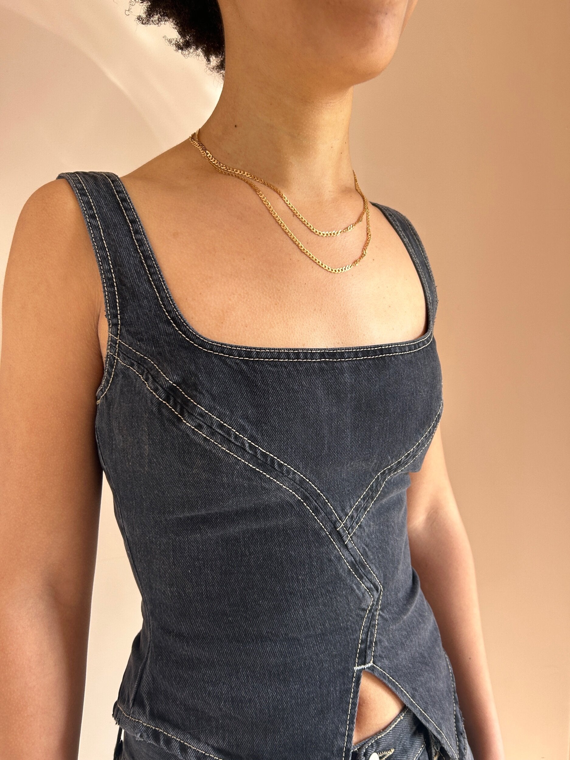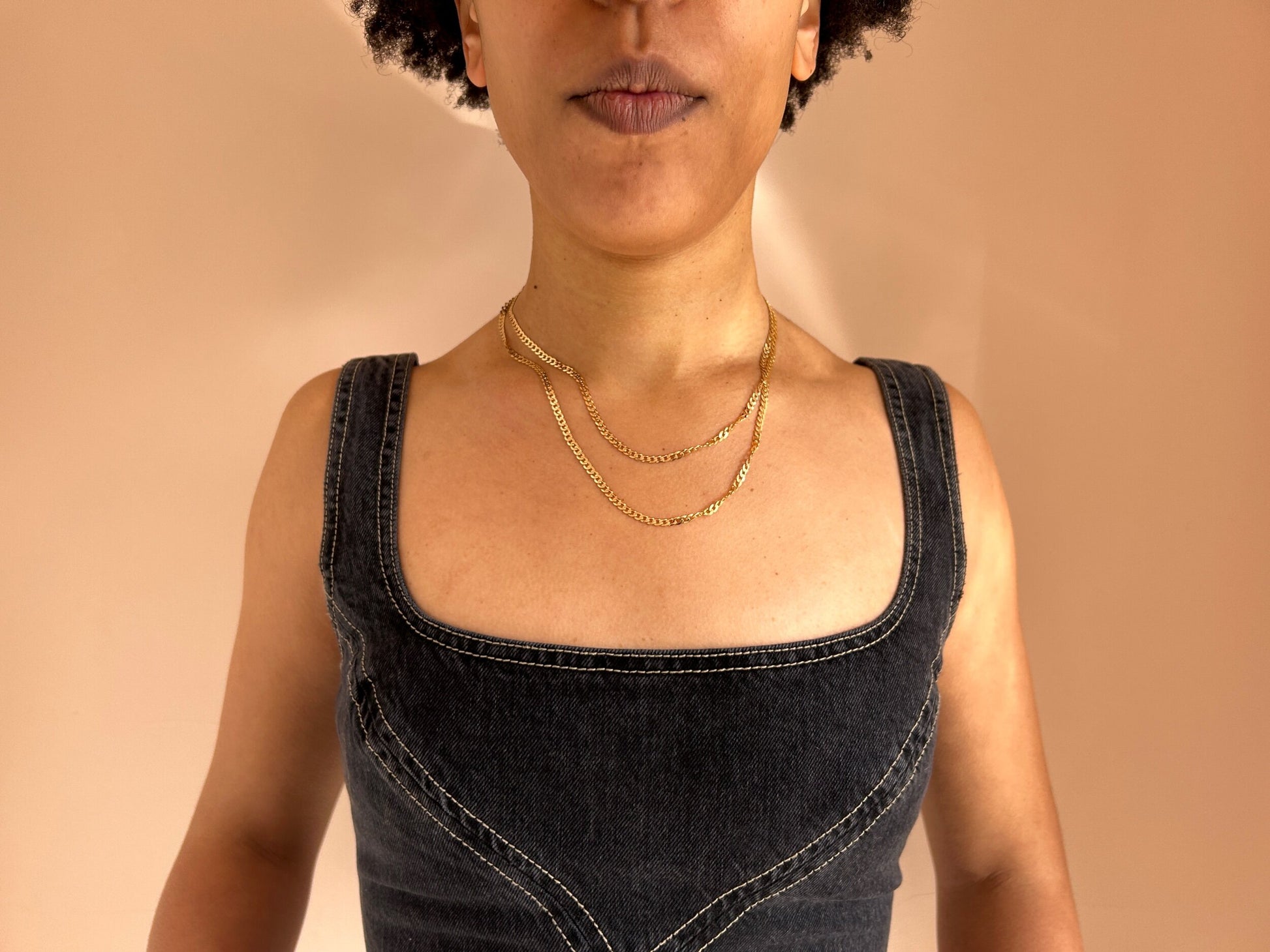 Your new favourite chain, layered or worn solo. Kudi layers hers up with two curb chains. It’s available in three lengths: