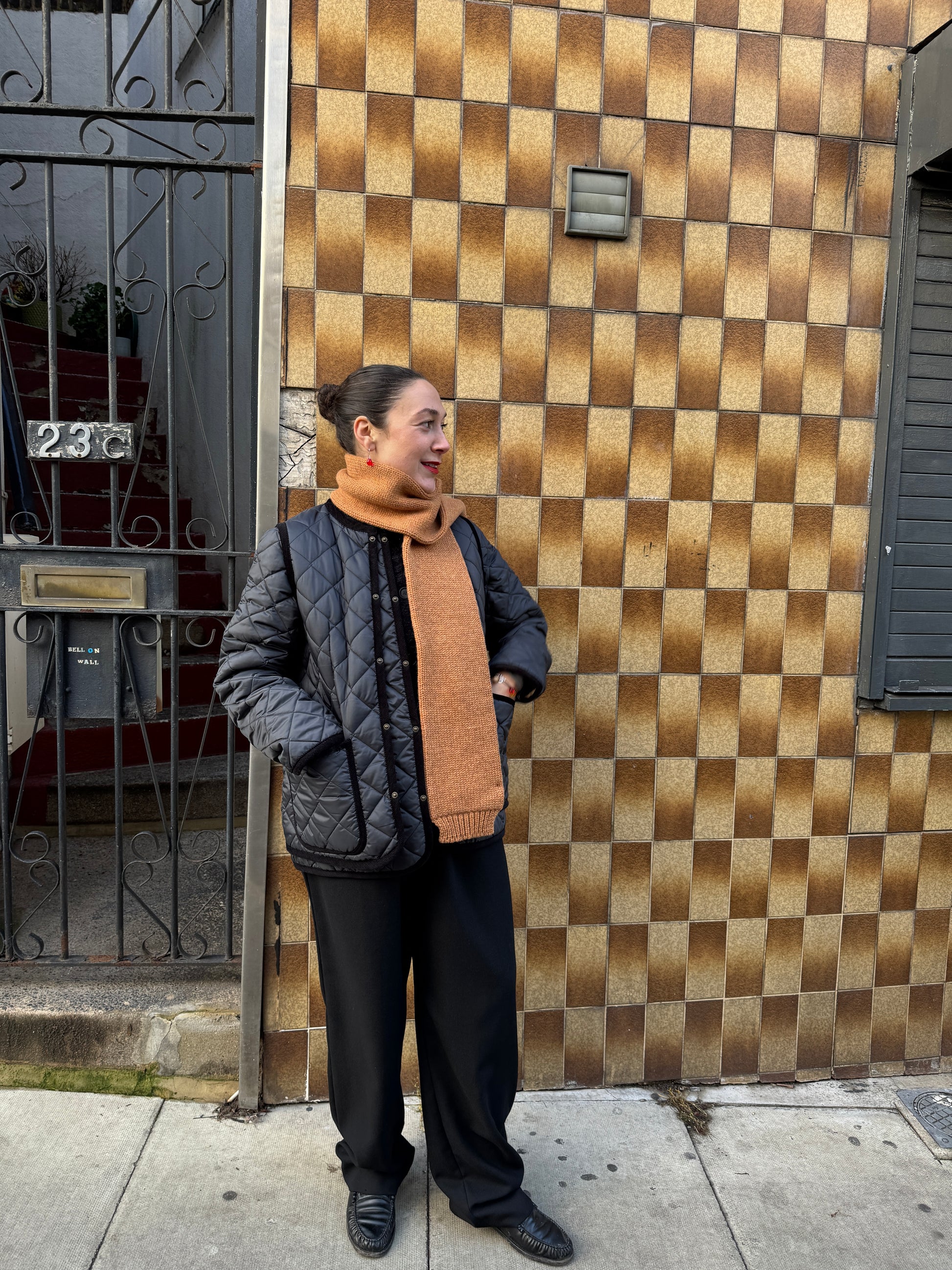 Lambswool scarf, approx 156cm long. Made by Rachel in the UK